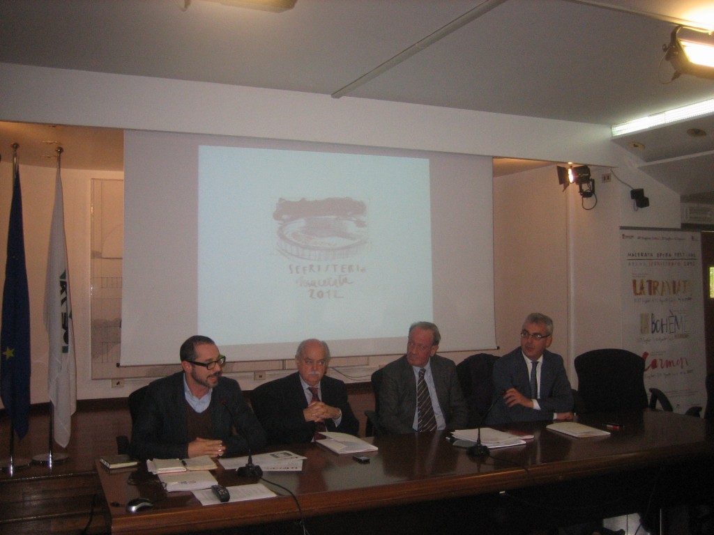 MACERATA 23/04/12 – Macerata sarà un grande palcoscenico. Il Macerata Opera Festival si presenta ad Ancona, nella sede istituzionale della Regione Marche, per illustrare un programma ricco di eventi che coinvolgerà l’intera città. Tre opere in cartellone allo Sferisterio – La Traviata di Giuseppe Verdi, La Bohème di Giacomo Puccini e Carmen di Georges Bizet, tre classici immortali, visti con uno sguardo aggiornato alla contemporaneità – accompagnate dal Festival Off, un nuovo percorso culturale che riempirà piazze e vie cittadine con reading, mostre, spettacoli, concerti.