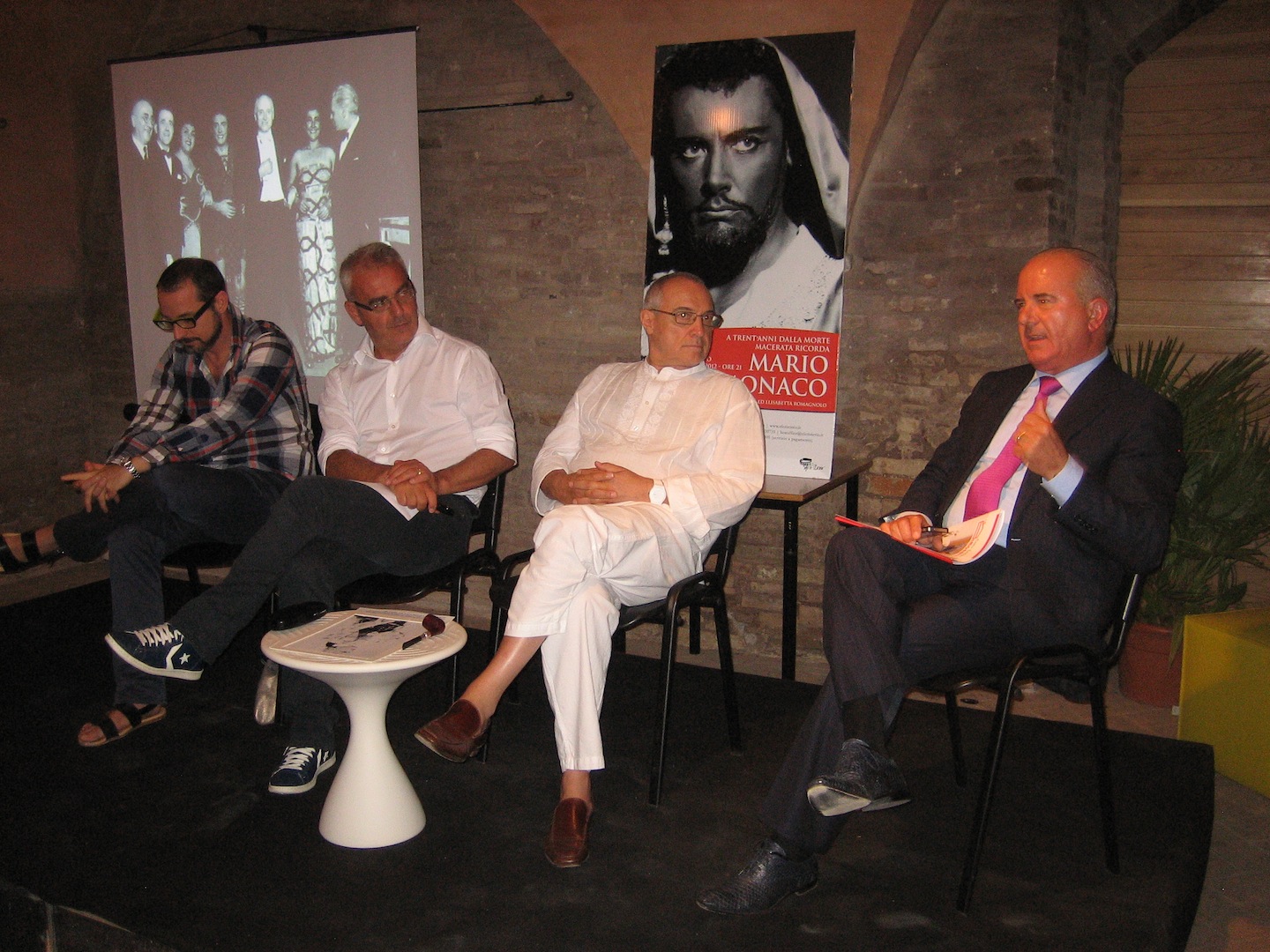 MACERATA 31/07/12 – “Una stagione dal titolo Allievi e Maestri di diritto comprende questo grande concerto in omaggio a Mario Del Monaco, Maestro indiscusso”. Il direttore artistico Francesco Micheli annuncia l’evento che giovedì prossimo porta allo Sferisterio alcune delle voci più acclamate sui palcoscenici operistici internazionali. Il 2 agosto, infatti, lo Sferisterio ricorda il trentennale della scomparsa del leggendario tenore con un gala, ideato e curato dal figlio Giancarlo. “Macerata ha un legame particolare con mio padre – racconta Giancarlo Del Monaco -. Lui è stato tra i protagonisti della nascita della stagione lirica dello Sferisterio con un trionfale Otello di Verdi nel 1967”. Proprio per offrire questo omaggio alla città, il costo dei biglietti è popolare, a partire da 10 euro. “Abbiamo pensato questa serata per tutti – dichiara il presidente dell’Associazione Sferisterio Romano Carancini -. Grande è l’aiuto che ci sta offrendo l’azienda Simonetti, che ringrazio, per il sostegno economico ed artistico verso l’Arena”. Patron della serata è Alberto Simonetti, titolare dell’azienda omonima main sponsor del Festival Off. “Amo la musica – afferma Simonetti – ed ho scelto di sostenere il Festival Off del Macerata Opera Festival perché credo nel progetto del direttore artistico Micheli. Questa è una grande occasione per mostrare il nostro concreto impegno a diffondere la passione per la lirica e a promuovere l’eccellenza dello Sferisterio, una struttura di primo ordine, fiore all’occhiello della nostra regione così ricca di risorse culturali, turistiche ed economiche”. Alla serata partecipano due illustri soprano italiani, Fiorenza Cedolins e Daniela Dessì, alcuni dei più prestigiosi tenori dei nostri anni come Roberto Aronica, Jorge De Leon, Vladimir Galouzine, i baritoni Luca Salsi e Marco Di Felice e ancora Anna Malavasi, Giancarlo Monsalve, Gianluca Terranova, Nataliya Tymchenko, Sue Wei, Silvia Dalla Benetta e Gustavo Porta. Macerata, che in passato ha ospitato oltre a Del Monaco tenori come Gigli, Di Stefano, Corelli, Pavarotti e Carreras, torna così ad essere un palcoscenico di riferimento per le grandi voci. Gianluca Martinenghi dirige l’Orchestra Filarmonica Marchigiana. A rendere la serata ancora più speciale il fatto che i vari artisti annunciati sul palcoscenico dell’Arena si esibiscono a titolo completamente gratuito. Nel corso del concerto vengono proiettati contributi video ed immagini d’archivio che documentano la straordinaria carriera di Mario Del Monaco nei maggiori teatri del mondo, incluse alcune immagini relative allo Sferisterio. Il materiale è selezionato da Elisabetta Romagnolo, autrice dell’unica biografia del grande tenore, appena ristampata in una nuova edizione aggiornata. Intanto domani va in scena al teatro Lauro Rossi (ore 21) l’omaggio al grande contrabbassista e compositore maceratese, Stefano Scodanibbio, a cura della Rassegna di Nuova Musica. Sul palco il pianista Fabrizio Ottaviucci, che con Scodanibbio ha collaborato in diverse occasioni ed è al momento impegnato in un progetto dedicato all’opera pianistica di Giacinto Scelsi; il contrabbassista Daniele Roccato che ha collaborato con il compositore maceratese ed è stato protagonista di diversi progetti in ambito contemporaneo (Henze, Gubaidulina) e pop (Dalla, Vecchioni); il violinista Marco Rogliano, brillante spalla dei Solisti di Pavia e vincitore di un Diapason d’Or per l’incisione di un pezzo di Sciarrino. Con loro lo scrittore, drammaturgo ed attore Vitaliano Trevisan, voce recitante in Alfabeto apocalittico. L’ingresso è gratuito con prenotazione obbligatoria presso la biglietteria di Piazza Mazzini. In caso di esaurimento posti, lista d’attesa presso il teatro Lauro Rossi a partire da un’ora prima dell’inizio dello spettacolo. (IN FOTO: da sinistra Francesco Micheli, Romano Carancini, Giancarlo Del Monaco e Alberto Simonetti)