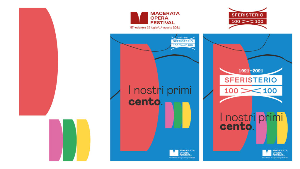 «Il lavoro presentato – spiegano gli autori – celebra l’unicità dello Sferisterio come luogo di fruizione culturale. Dopo aver analizzato e reinterpretato una serie di forme iconiche dell’edificio, abbiamo scelto di concentrare tutto attorno a quella più rappresentativa e che meglio racchiude tutte le altre, ovvero la forma derivata dalla pianta dello Sferisterio, un simbolo grafico sempre riconoscibile e intrinsecamente legato alla storia del luogo, reso come segno grafico attuale. Il linguaggio visivo è accessibile e parla ad un pubblico ampio, pur senza perdere le caratteristiche di tradizione e proposta artistica che contraddistinguono il Macerata Opera Festival. Il simbolo così ottenuto è estremamente versatile, garantendo varietà e riconoscibilità alla comunicazione».