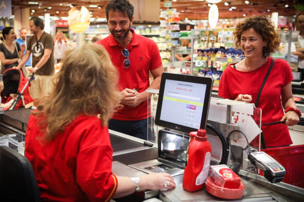 Attori d’eccezione del flash mob, nel ruolo di clienti alla cassa, anche il direttore musicale Francesco Lanzillotta e la direttrice artistica Barbara Minghetti del Macerata Opera Festival.